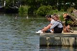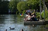 Spectators on pontoon