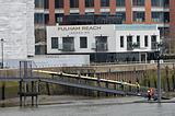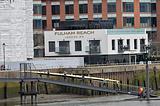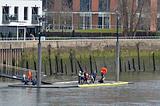 Fulham Reach disembark in distance